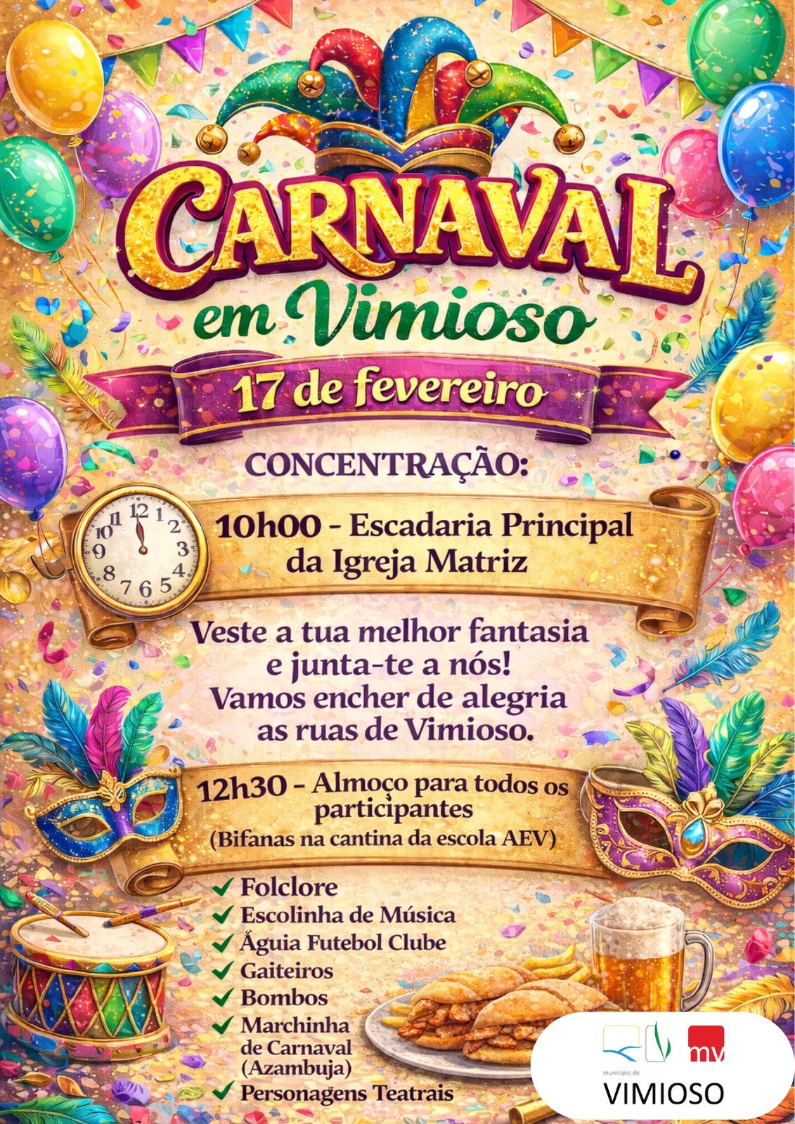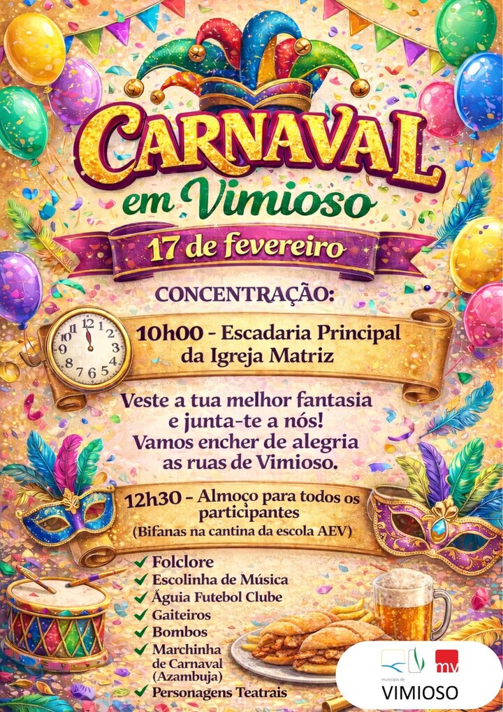 Associe-se ao desfile que, na manhã do dia de Carnaval, invadirá de alegria, música e euforia, as ruas de Vimioso!