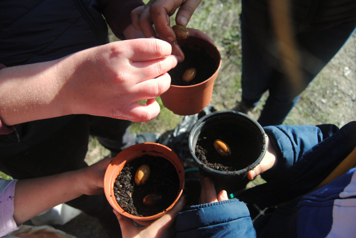 Agora esperamos que as nossas bolotas se transformem em pequenos carvalhos para depois os plantarmos!